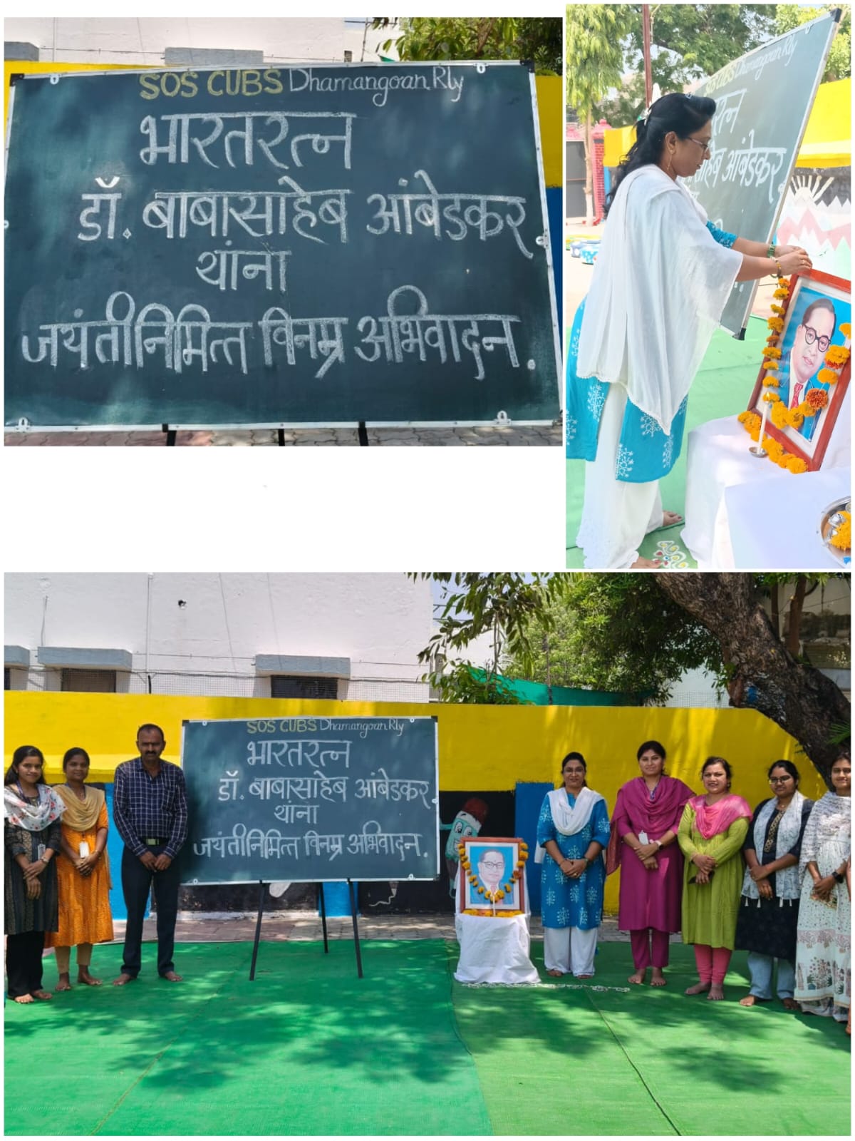 दिनांक:१४/०४/२०२६ : एस ओ एस कब्स येथे भारतीय राज्यघटनेचे शिल्पकार भारतरत्न डॉ बाबासाहेब आंबेडकर यांची जयंती उत्साहपूर्ण वातावरणात साजरी करण्यात आली. कार्यक्रमाची सुरुवात डॉ आंबेडकर यांच्या प्रतिमेचे पूजन व पुष्पहार अर्पण करून करण्यात आली. . प्री. प्रायमरी हेड मा. शबाना खान यांनी डॉ. बाबासाहेब आंबेडकर यांच्या जीवनकार्यावर प्रकाश टाकत विद्यार्थ्यांना त्यांच्या विचारांचे महत्त्व समजावून सांगितले. समता, शिक्षण आणि सामाजिक न्याय तसेच सर्वांना समान वागणूक देण्याची प्रतिज्ञा या मूल्यांचे पालन करण्याचे आवाहन करण्यात आले. पुढे त्यांनी विद्यार्थ्यांना शिका, संघटित व्हा आणि संघर्ष करा हा बाबासाहेबांचा संदेश जीवनात आचरणात आणावा असे समजावून सांगितले.