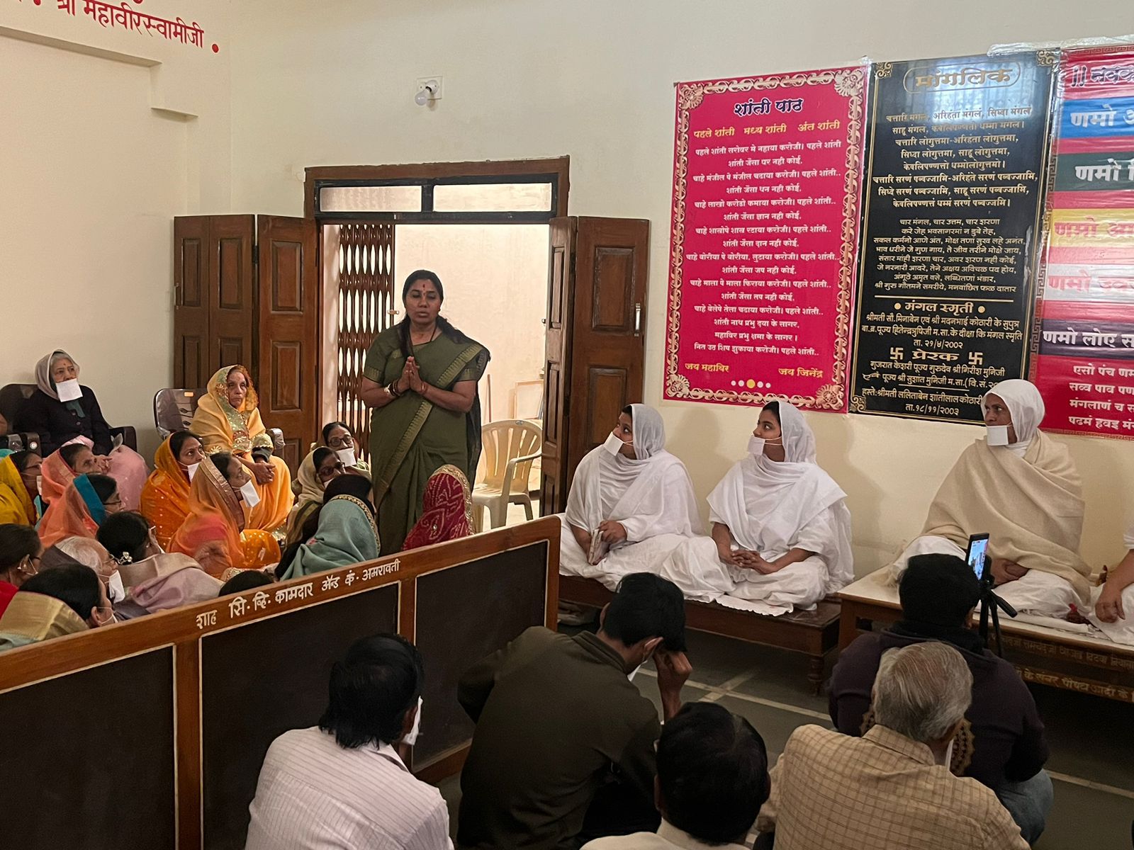 चांदुर रेल्वे / श्रवणसंघीय उपप्रवर्तिनी आयबिल तप आराधीका पूज्य श्री अरुणप्रभा श्री जी म सा यांचा चांदुर रेल्वे शहरात ता 3 रोजी शहरातील जैनस्थानात येथे आगमन झाले, दोन दिवसीय कार्यक्रमात त्यांनी जैन समाजातील महिला व पुरुषांना अनेक प्रवचन केले, यावेळी त्यांनी सांगितलं की जप तप व ध्यान साधना केल्या पाहिजे, तर मौन साधना केल्याने मन शांत राहते तपस्य केल्याने शरीर स्वस्त राहते, जिओ और जिने दो चा संदेश देणारे जैन समाजाचे उद्धववाक्य आहे, त्यामुळे प्रत्येक व्यक्तीने कोणत्याही लहान मोठ्या जीवांना हानी पोहोचू नये, असे सुद्धा त्यांनी यावेळी सांगितले, ता 4 रोजी सकाळी नऊ वाजता पैसठिया यंत्राचा जाप सोबतच पुनम की बडीमांगलिक झाली हा कार्यक्रम ऐकण्याकरिता नागपूर यवतमाळ हिंगणघाट धामणगाव अमरावती बडनेरा येथील अनेक जैन समाजाचे नागरिक व महिला यावेळी आले होते,