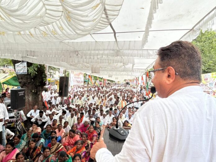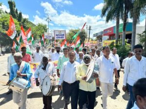 तालुक्यात खरीप हंगामात झालेल्या अतिवृष्टी व सततच्या पावसामुळे शेतकऱ्यांचे मोठ्या प्रमाणावर नुकसान झाले आहे. शेतकरी आर्थिक संकटात सापडलेले असताना शासनाने तातडीने मदतीची घोषणा करावी, ओला दुष्काळ जाहीर करून शेतकऱ्यांना हेक्टरी ५० हजार रुपये मदत द्यावी, अशा ठाम मागणीसाठी तालुका व शहर काँग्रेस कमिटी, धामणगाव रेल्वे व चांदूर रेल्वे यांच्या वतीने सोमवारी भव्य धडक मोर्चा काढण्यात आला.