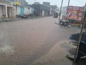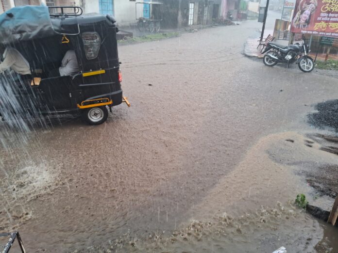 तलेगांव में झमाझम बरसात से रस्ते बने नदिया,नालियों में नही समाया पाणी, बरसात की जबरदस्त दस्तक हरतरफ पाणी पाणी।।