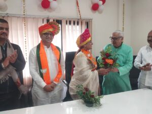 तसेच सर्व मान्यवरांच्या उपस्थितीत न. प. मुख्याधिकारी डॉ. किरण सुकलवाड यांचे हस्ते नवनिर्वाचित नगराध्यक्ष सह सर्व नगरसेवकांचे भारताचे संविधान प्रतिमा व पुष्पगुच्छ देऊन स्वागत केले.