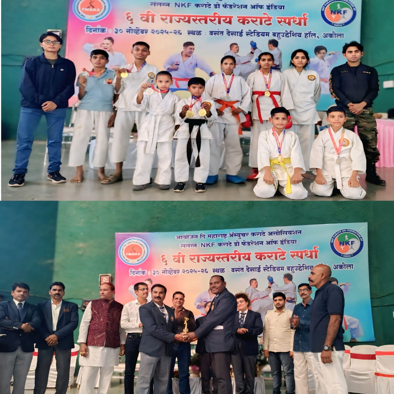 नंलग्न NKF कराटे डो फेडरेशन ऑफ इंडिया कराटे या स्पर्धेचे दि. 30 नोव्हेंबर 2025-26 ला आयोजन केले होते. यामध्ये अमरावती जिल्हातील धामणगाव रेल्वे येतील बोधी बुडोकान कराटे 10 विद्यार्थ्यांनी काता व कुमिती मध्ये 20 पदके पटकावले त्यात गोल्ड मेडल काता कुमिती मध्ये निर्मिती सयाम, प्राची सूर्यादय काता सुवर्ण पदक , नंदनी भेंडे काता रौप्य पदक, स्वरा डुबे काता कुमिती रौप्य पदक, सोनाली गुप्ता काता रौप्य पदक, कृष्णा चौधरी कुमिती सुवर्णपदक, काता, रौप्य पदक, शारंगधर गुप्ता काता कुमिती रौप्य पदक, रोहन खोब्रागडे काता कुमिती मध्ये रौप्य पदक, श्री हरी कडू कुमिती सुवर्ण पदक, कनक राठी कुमिती सुवर्ण पदक, व मास्टर सचिन मून यांना ट्राफी देऊन सन्मान करण्यात आला, व मास्टर संमेक दहाट, सचिन चौधरी व यांचा सुद्धा सन्मान करण्यात आला व यशाचे श्रेय भन्ते धम्मसार, मास्टर मुकेश कुमार कांबळे, मास्टर आकाश पवार यांना देत विद्यार्थी यांचेसुद्धा मोलाचे सहकार्य लाभले. याशिवाय पालकांनी व धामणगाव वासियांनी सर्वांचे आनंद व्यक्त करीत, खूप कौतुक व अभिनंदन केले आणि यशासाठी शुभेच्छा दिल्या.