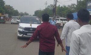 बच्चूभाऊ कडू यांच्या अन्नत्याग आंदोलनाच्या समर्थनात शेतकऱ्यांचे आर्वीत आमदार केचे यांच्या गाडीसमोर झोपून केले आंदोलन
