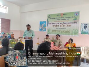 धामणगाव एज्युकेशन सोसायटी द्वारा संचलित श्रीमती हिराबाई गोयनका कन्या विद्यालय धामणगाव रेल्वे येथे राष्ट्रीय हरित सेना व सामाजिक वनीकरण विभाग परिक्षेत्र धामणगाव रेल्वे यांच्या संयुक्त विद्यमाने पर्यावरण प्रदर्शनीचे आयोजन दिनांक 15 जानेवारी 2025 गुरुवार रोजी करण्यात आलेले होते.