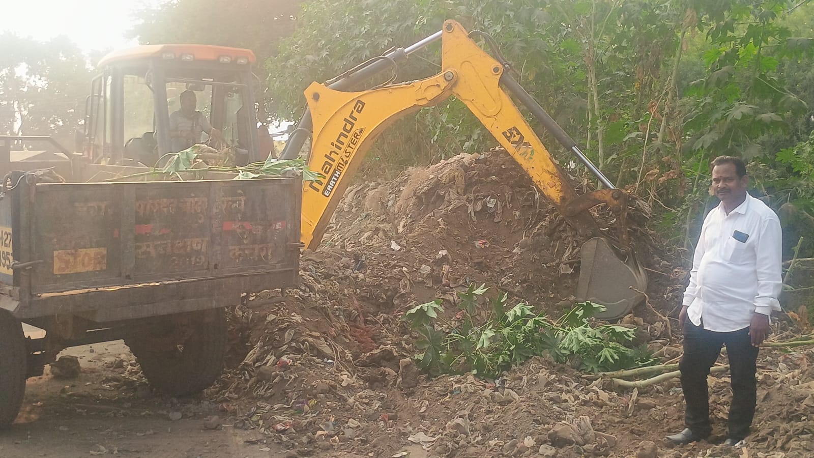 चांदुर रेल्वे / मागील चार वर्ष अगोदर शहरातील आठवडी बाजारातील मुख्य नाला साफ करण्यात आला होता त्यावेळी नाल्यातून निघालेला जवळपास दीडशे ते दोनशे ट्रॅक्टर कचरा काढून नाल्याच्या काठावरच टाकण्यात आला,तेव्हापासून हे कचराचे ढीग तिथेच पडले होते, आठवडी बाजार असल्याकारणाने येथे भाजीपाले फळ विक्रेते आपले दुकाने लावतात या कचऱ्यातून निघणारे किडे भाजीपाल्याने फळावर बसते तर पावसाळ्याच्या दिवसात ्या ढिगार्यातून निघणारा गंडूळ पाण्यामुळे डायरिया सारखे अनेकांना आजार झाले होते, कचऱ्याचे ढिगारे उचलण्याकरिता अनेकांनी निवेदन देऊ वर्तमानपत्रात बातम्या सुद्धा प्रकाशित करण्यात आल्या होत्या मात्र न प प्रशासनाने त्यावेळी कोणतीच दखल घेतली नाही,मात्र नव्याने निवडून आलेल्या नगरसेवक व बांधकाम सभापती गजानन ठाकरे यांनी शहरातील या गंभीर समस्यांची दखल घेत जेसीपी ट्रॅक्टरच्या मदतीने हे ढिगारे आठवडी बाजारातून उचलून हा परिसर स्वच्छ केला,